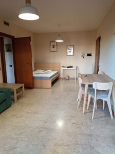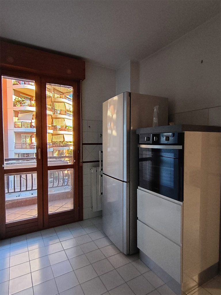 Palazzina in cortina signorile con portiere, appartamento in affitto completamente arredato composto da soggiorno, cucina abitabile, camera matrimoniale, bagno, ripostiglio/lavanderia, terrazzo abitabile, cantina e posto auto coperto serviti da ascensore. L’appartamento è dotato di porta blindata, aria condizionata e riscaldamento autonomo, piscina condominiale nei mesi estivi, APE E.